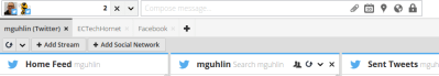 | Notice I have 3 accounts I manage…two twitters, and one facebook using Hootsuite. |
