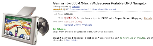 Good point, Kevin! I need to focus on what I'm SAVING rather than what I'm spending! 8->Anyways, I'm thrilled at the possibilities and can see myself never getting lost again. HA! When will we get sophisticated enough to get to borg tech? Implant that GPS right here…BTW, can't others track me with this device once I get it?;->