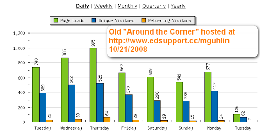 To the right, you’ll see my stats for the “old” Around the Corner site at http://www.edsupport.cc/mguhlin are still…high.