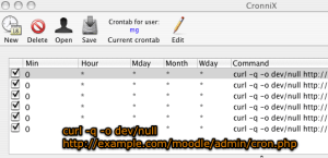 Cron assists some of Moodle’s modules to perform tasks on a scheduled basis. For example, the cron process might tell Moodle to check all discussion forums so it can mail out copies of new posts to people who have subscribed to that forum. The primary Moodle script that does all this is located in the admin directory, and is called cron.php. However, it can not tell itself to run, so you need to set up a mechanism where this script is run regularly (eg every five or ten minutes). This provides a “heartbeat” so that the script can perform functions at periods defined by each module.