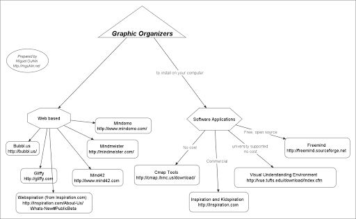 Here’s a quick overview of the graphic organizers I’m aware of that I made using VUE (right-click to view full size)