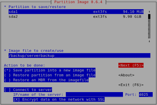 12) You are now ready to run PartImage. To do that, type partimage at the command prompt.
