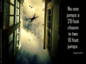 Yes, lives of quiet desperation are those who are satisfied with incremental change. Thanks, Scott, for reminding me…big change isn’t incremental. Big change is a leap of faith.