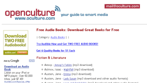 Angela Maiers–out with her new book Classroom Habitudes, by the way, that she’s promised to send me for a review–shares this link to a review of OpenCulture, another provider of free audio books. Now, in my mind, I have the image of Librivox recorders as a monastery full of folks pouring themselves into their recordings. Part of this comes from the impression their blog, an almost spartan design that focuses on the content and not the people.