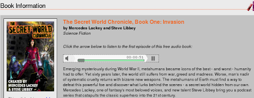 BTW, in my travels I stumbled on a non-audio book source…Baen books offering books for free online. It was funny to read at the hesitation in putting books in audio format online. It reminded me of The Alchemist author’s (Paul Coelho) words: