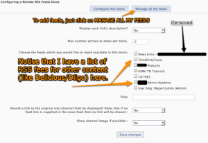 If you want to add new Remote RSS feeds or delete existing ones, click on MANAGE ALL MY FEEDS.