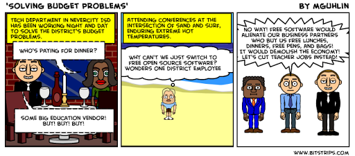 Ric Murry recently shared a snapshot of the kinds of conversations happening around solving budget problems. What he didn’t realize is that he missed the conversation happening behind the scenes…and I’ve tried to capture it below (right click to view at full size):