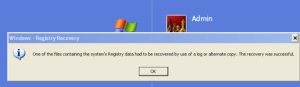 When I turned on my Dell laptop, I got this message:One of the files containing the system’s Registry data had to be recovered by use of a log or alternate copy. The recovery was successful. (Printscreen attached)I tried Googling it but it’s like speaking a foreign language. All my desktop settings, default search engine, etc. are gone.Do you know what this means? Should I start backing up?