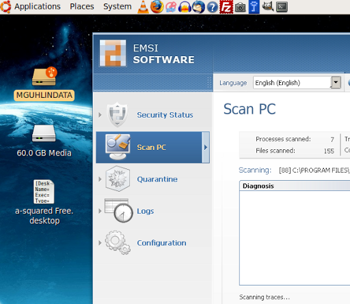 I recently booted up off my UbuntuLinux USB Flash drive, installed Windows antivirus and anti-malware tools on it. UbuntuLinux, like other distributions of GNU/Linux, can run some Windows applications using a program called WINE. The old laptop I was booting up off of was infested with viruses and spyware…and it gave me the opportunity to capture these screenshots: