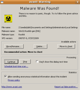 Here is what an installation of Avast! AntiVirus Home Edition looks like scanning a Windows mounted hard drive on an UbuntuLinux Flash boot:
