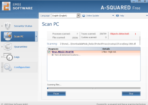 Here is another antivirus program, A-Squared Free edition. This program actually didn’t work as well as Avast!, crashing about 2% into the scan.