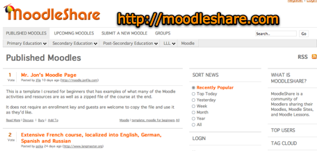 MoodleShare is a community of Moodlers sharing their Moodles, Moodle Sites, and Moodle Lessons.