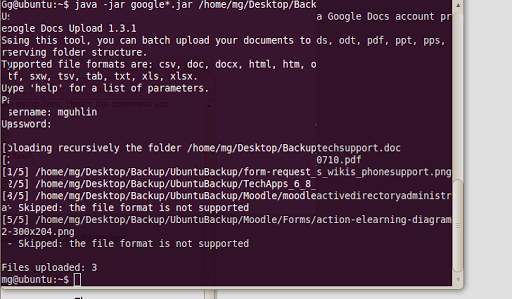 java -jar google-docs-upload.jar c:\myfolder –recursive