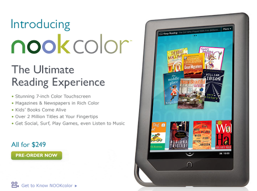 As much as I love my Nook from Barnes and Noble, news like this is irritating. The sad part, it is a neverending story of disappointment when I buy technology, the new version comes out shortly thereafter. In this case, it’s the Nook Color, as shown in the screenshot below from my email notification: