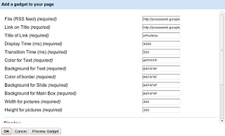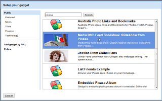 The gadget I used on GoogleSites to pull the RSS image feed from Picasa tag search appears below, the Media RSS Feed Slideshow: