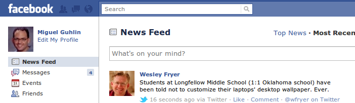 Hey there Miguel,First, thanks for the pointer to my post, appreciate it.I hadn't seen this story about the faculty – that's really sad, and makes me wonder about the future of our kids if they're having their individuality halted in this way.Thanks for bringing it to our attention.