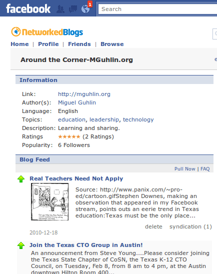 This past weekend, I noticed that Vicki Davis (CoolCatTeacher) was using something called “NetworkedBlogs” on Facebook to autopost content to Twitter…intriguing! So, for fun, I set it up.