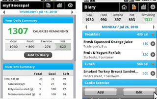 But having more information is always good. That’s why I was thrilled to take TechieThomas (Denise Thomas) recommendation via Plurk and try out MyFitnessPal.com‘s Calorie Counter app (read a review) for my Android phone. After filling out a few questions, I’m now able to keep track of what I’m eating, the number of carbs and calories, and get specific recommendations!