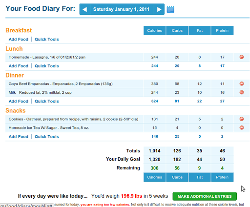 What impressed me about adding items to the food diary was that they had Goya beef empanadas, which my Mother made for me over Christmas. Goya is a special shell that the beef is placed in and you have to buy it special at the Latin Market store…but MyFitnessPal had it in their searchable database of foods!