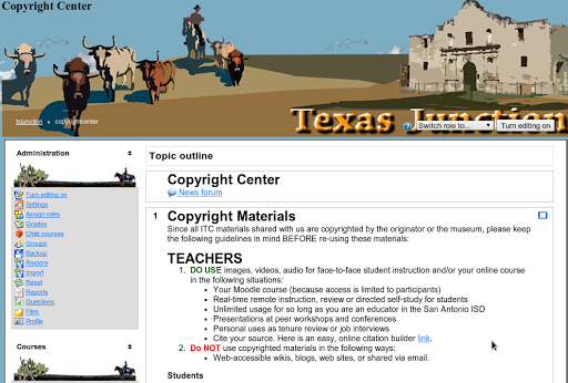 Once you’ve setup your metacourse with the resources–in this case, a Copyright Center as shown below–you’re ready to move on to the next step:
