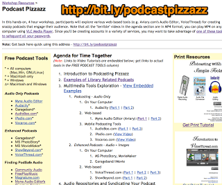 Thanks to Mary Jo Humphreys (RoundRock ISD) for inviting me to present a podcasting workshop, which, on short notice, I suggested the title of Podcast Pizzazz. In retrospect, I probably should have just used my print handout’s title!