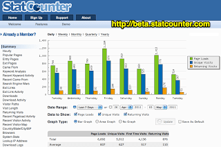 One of my favorite hit counters–StatCounter–gets a new look! Some of the new features include hourly summaries, a cleaner look (very nice!), and graphs like the one below: