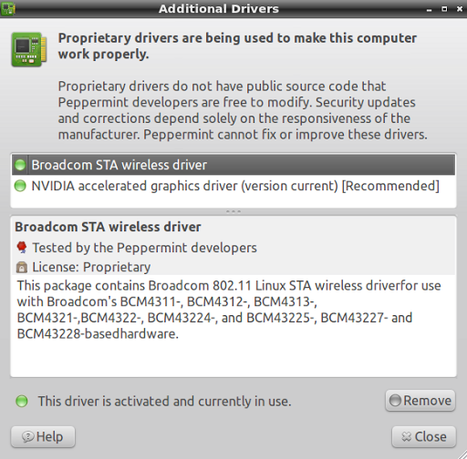 Peppermint Two also continued support for proprietary drivers, essential on this particular machine: