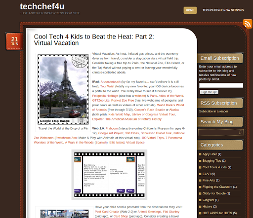 You can read Lisa Johnson’s blog on iPads and more at http://techchef4u.wordpress.com/