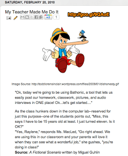Earlier this school year, I blogged an entry entitled My Teacher Made Me Do It. Essentially, it suggested that teachers–in their eagerness to get students using new Web 2.0 technologies–may encourage their children to lie when they dodge the Terms of Service. The fictional scenario was based on “true stories” I’d heard from teachers in my travels and at conferences.