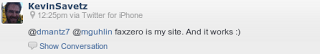 …and immediately received one endorsement of the product and a tweet from the owner, both shown below:
