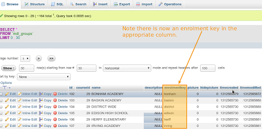 Notice that 5th column in the spreadsheet has the list of enrolment keys for each group.