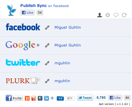 PublishSync is a Chrome Extension that does a great job making it easy for you to publish to Twitter, Facebook, Plurk and other social media/networking tools. It is so easy to use, you’ll wonder why you didn’t spend all your time in Twitter. It looks like this: