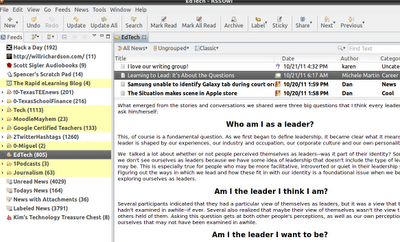 I agree that reading through GoogleReader is not always as engaging and interesting to read as twitter is. I am actually new to using Twitter, and it is always interesting to scroll around and view what people from all over have to say. 🙂
