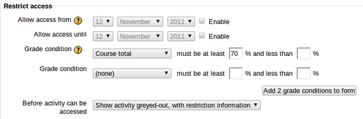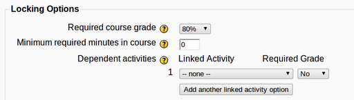 For example, in Moodle 1.9 Certificate activity settings, one sees this when trying to require a minimum grade on an activity: