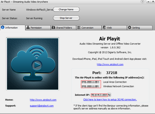 Air Playit is a video streaming software designed to stream videos audios to Apple iPhone, iPad, iPod touch and Google Android OS mobile devices. Air Playit is capable of streaming 320 different video & audio formats to your mobile devices via WiFi and 3G/4G network. It acts as your personal audio video cloud server and lets you watch videos on the go.