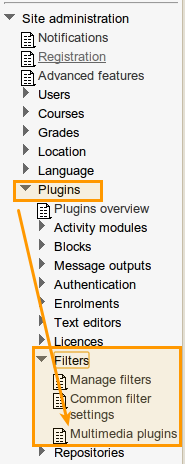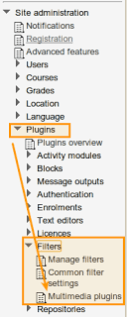 To accomplish that, go to SITE ADMINISTRATION->PLUGINS->MANAGE FILTERS in your Moodle 2.2x site as shown below: