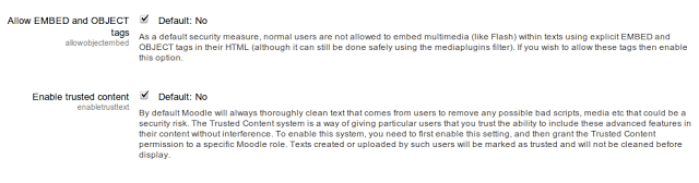 5. You are welcome :-)btw, I enjoyed your post very much.And just found out that i can paste IFARME embed code from YouTube directly, anywhere, into HTML code in Moodle 2.2I did not tweak it and i am sure it was not possible, on early versions, especially since i made a video tutorial how to circumvent it. funny. can you confirm this too?
