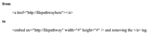 Note that I’ve had mixed results with this embed code; it works with SWF, but probably not with other video formats.