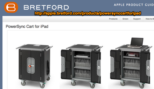 Ergotron also makes a good one that we are in the process of buying. Depending on how many inserts you put in the cart, it will support charging/synching 16/32/48 iPads.http://www.ergotron.com/ComputerCarts/tabid/158/language/en-US/Default.aspxscroll down to the АЬTablet Management Ca т Э. We bought them for less through CDW-G.