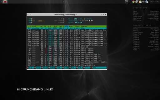 CrunchBang is a Debian GNU/Linux based distribution offering a great blend of speed, style and substance. Using the nimble Openbox window manager, it is highly customisable and provides a modern, full-featured GNU/Linux system without sacrificing performance.