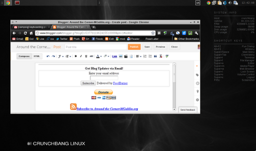 As a result of some Google+ conversations, listening to the sometimes slightly bawdy EverydayLinux, I decided to give a lightweight Linux distribution a try–Crunchbang.org Linux which is represented with a #!