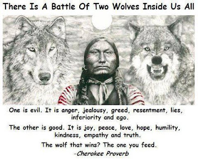 “Sometimes it is hard to live with these two wolves inside me, for both of them try to dominate my spirit and are always struggling against each other.”