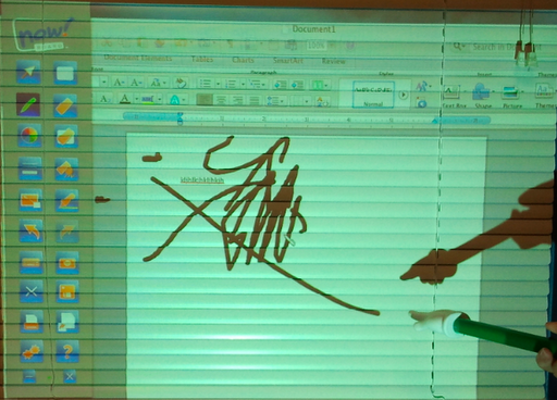If you’ve had that experience–watching something work awesomely elsewhere, then not being able to replicate the awesomeness yourself–you know how I feel about the $499 nowBoard! after trying to get it work on any surface. I’d received the nowBoard prior to the TCEA 2012 Conference but came down so busy with work, then got sick, so this evening was the first chance I had to give it a shot. Earlier this month, I had the opportunity to see the nowBoard! in the hands of a master at the TCEA 2012 Conference.