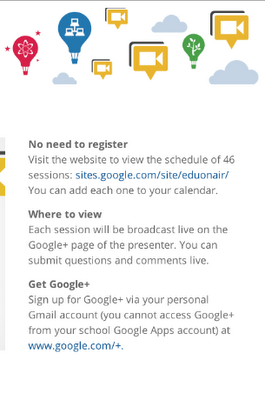 You do not need to register to watch the Hangouts On Air. Visit theConference Schedule tab to find sessions that interest you and add them to your calendar. All Hangouts will be live on the presenters’ Google+ Page on May 2nd at the appointed time.