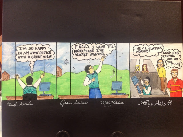 As you might imagine, I was delighted to receive this work of art (above) from my team earlier this week. Created by Molly Valdez (Virtual Learning Coordinator) and designed by all my team–notice the signatures–you can see what they imagine what my life will be like in my new workplace! What a laugh to get to the last panel!