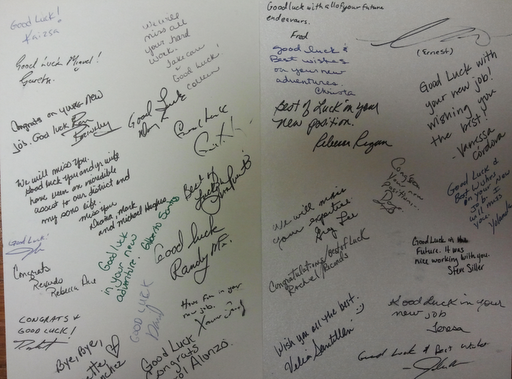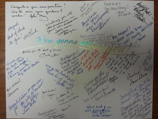 - We will miss you Miguel. Best wishes to you in your new position and Congratulations. I wish you the BEST!!!