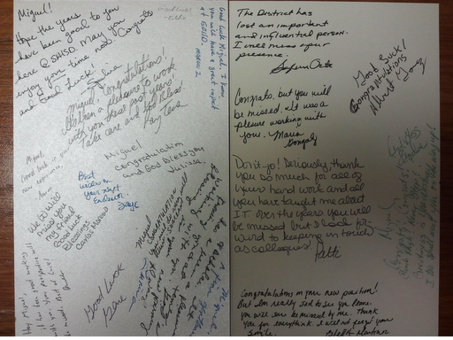 - Best wishes in your new position, Miguel! THANK YOU for always helping me and my staff when we needed help. Your efforts are greatly appreciated!