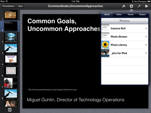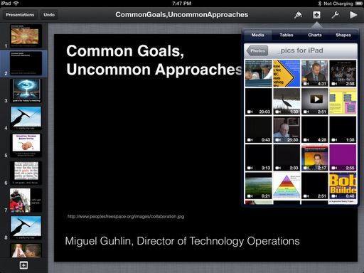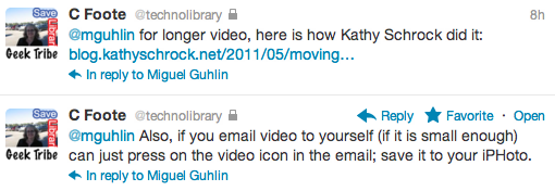 I immediately tweeted at Carolyn, “How are you putting embedding videos into Keynote on iPad?” (or something similar). She responded: