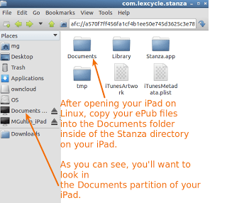- Connect your iPad to a Linux machine and then copy the ePub files into the Documents drive of the iPad. You’ll need to put the ePubs into the Stanza documents directory.