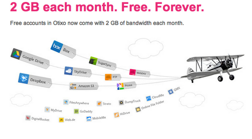 Looking for an easy way to save documents to Dropbox, Box, SugarSync from webdav friendly apps on your iPad? Then take a hard look at Otixo, which has upped it’s bandwidth usage from less than 300 megs a month to 2 gigs per month! That’s a tremendous improvement that should have any iPad user who uses iWorks, etc. and wants to save their documents to cloud storage solutions sitting up and paying attention!
